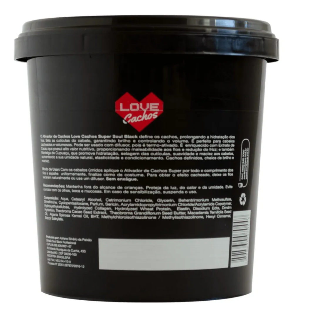 O Ativador de Cachos Love Cachos Super Soul Black define os cachos, prolongando a hidratação dos fios.