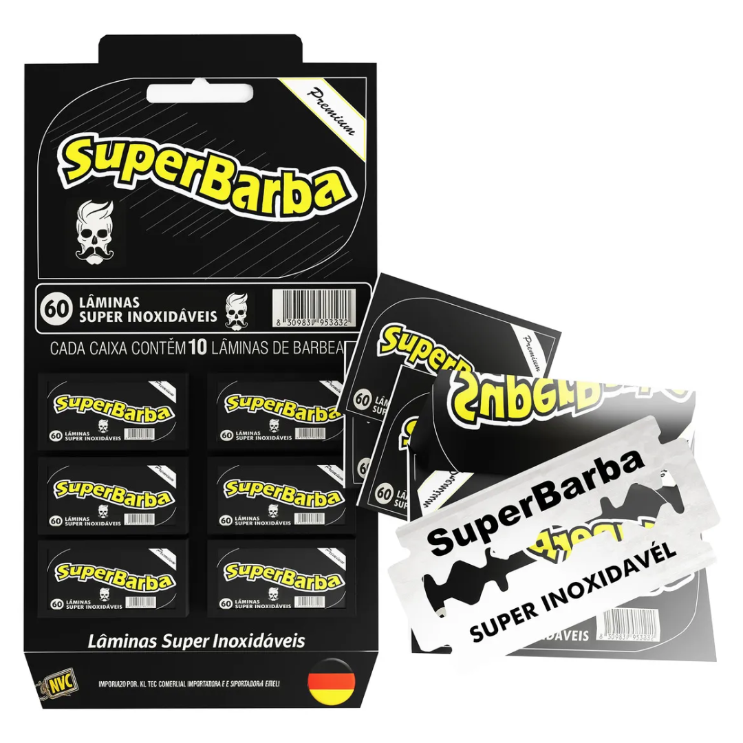 As Lâminas Super Inoxidáveis Superbarba Premium são projetadas para proporcionar um barbear suave e preciso. Feitas com material de alta qualidade e resistência, essas lâminas são inoxidáveis, garantindo durabilidade e desempenho superior. Perfeitas para um corte rente e confortável, são ideais para quem busca qualidade e precisão no cuidado diário com a barba.