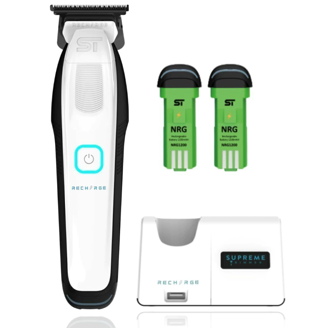 Apresentamos a Máquina de Acabamento Supreme Trimmer Recharge ST777/WHT, a escolha perfeita para profissionais que buscam precisão, eficiência e praticidade em seus cortes. Com design moderno na cor branca, esta máquina alia tecnologia avançada e recursos que facilitam o uso diário em salões de beleza e barbearias.