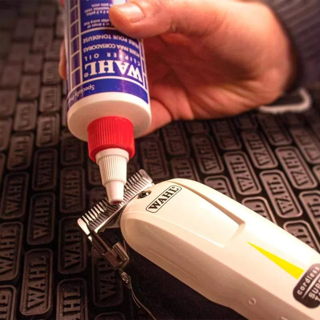 Óleo Wahl Profissional é recomendado para uso com todas as lâminas Wahl Profissional para manutenção regular e desempenho ideal. A Wahl incentiva os Barbeiros a usar óleo e a limpar suas lâminas antes e depois de cada uso, para garantir que a lâmina do seu cortador alcance o máximo de desempenho. O óleo do cortador ajuda a reduzir o atrito e o calor que podem ser produzidos durante o corte. Reduz a possibilidade de as lâminas ficarem opacas e ajuda a aumentar a durabilidade da lâmina. Observação: usar qualquer outro lubrificante nos cortadores Wahl pode causar danos às suas lâminas e ao cortador.